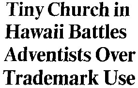 Trademark Involved A lawyer for the church corporation said that a trademark is a property right and the Kona congregation is not entitled to the church's "good name" because its members no longer subscribe to the denominational form of government and discipline.